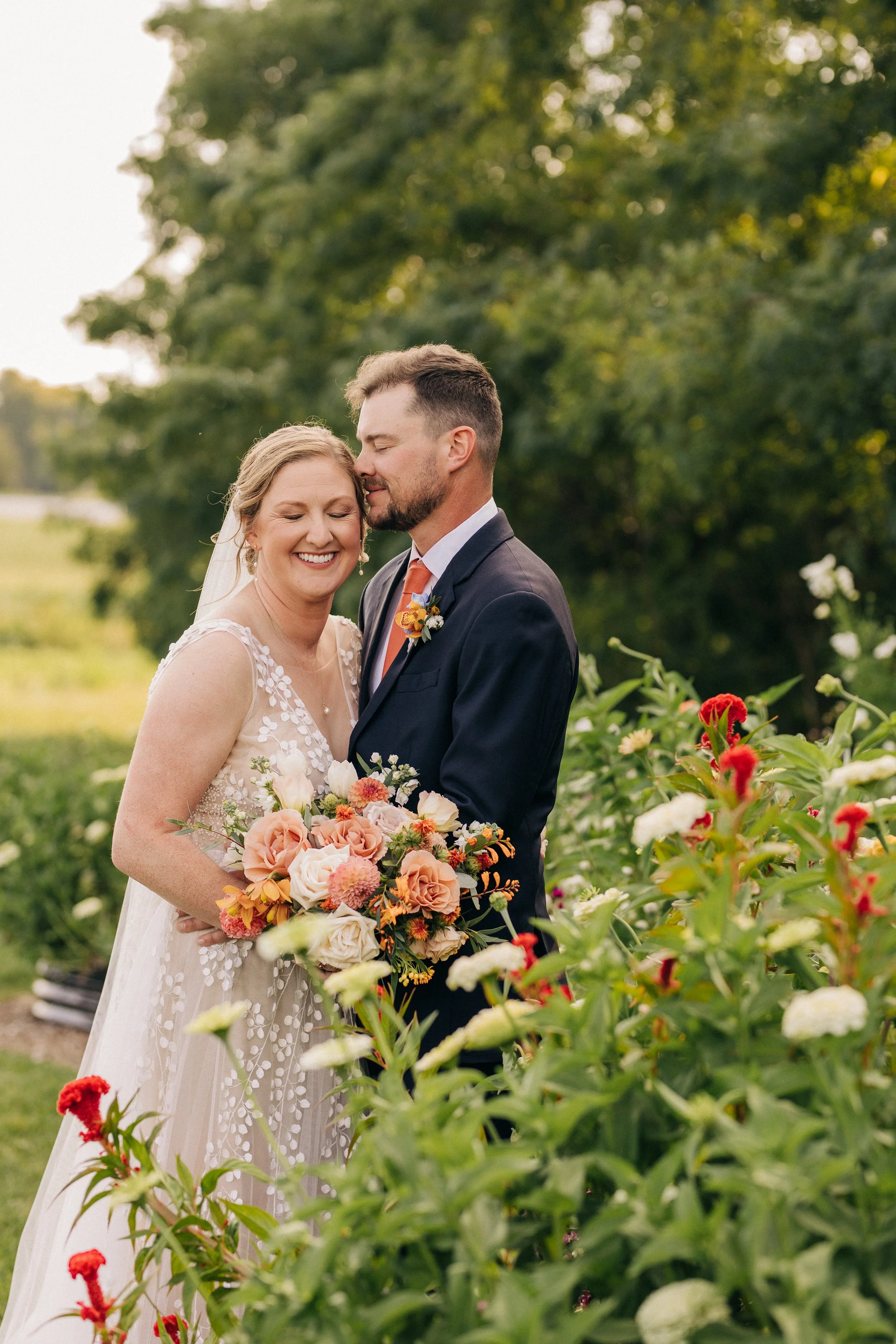 C + C were wrapped in all the Fall warmth. Soft oranges, creams, and blush florals complimented their celebration. Sweet moments with their dog, a walk down the aisle through our garden; a moment culminating into pure magic.